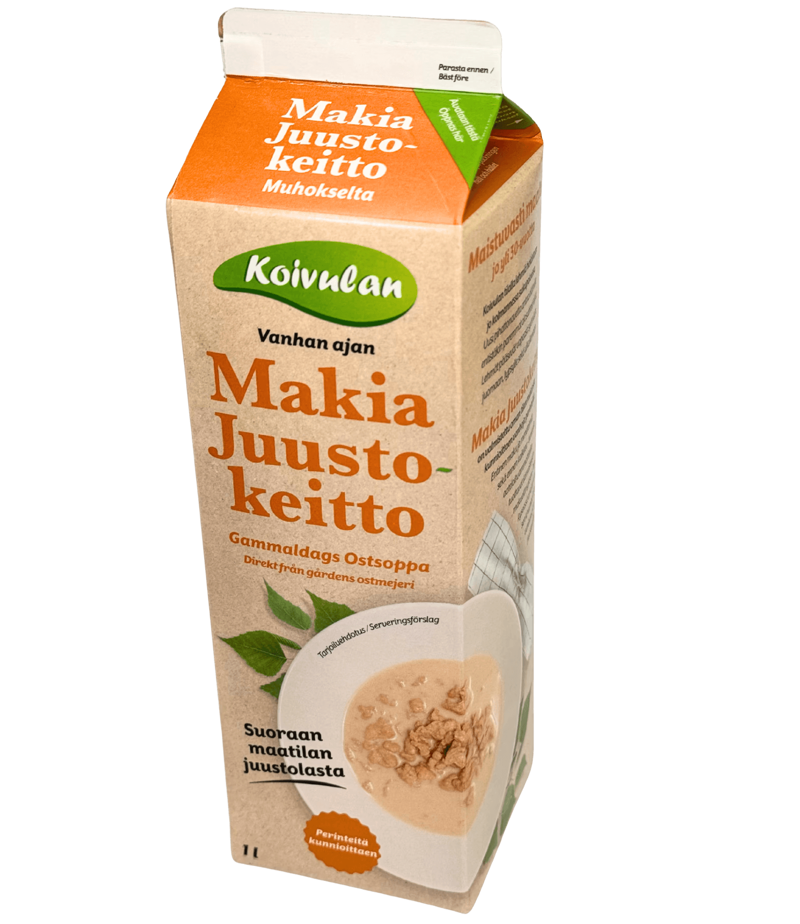 Koivulan Makia Juustokeitto on suomalaista perinneherkkua parhaimmillaan. Tämä täyteläinen ja lempeän makea herkku valmistetaan oman tilamme tuoreesta maidosta, kunnioittaen vanhoja valmistusmenetelmiä ja rikasta ruokaperinnettä. Juustokeittoa on nautittu Oulun eteläpuolella jo 1930-luvulla, ja ennen vanhaan se oli ainoastaan juhannusruokaa. Sen keittämiseen kului tunteja, ja juustokokki valvoi herkeämättä keitoksen valmistumista – kilpaa keskiyön auringon kanssa. Työ oli kuitenkin vaivan arvoinen, sillä herkullinen juustokeitto kirkasti keskikesän valon juhlan. Koivulan Makia Juustokeitto syntyy entisillä menetelmillä, juuri lypsetyllä maidolla ja ennen kaikkea – tunteella aateloidulla ammattitaidolla. Uutta on vain se, että tätä juhlaruokaa voi nyt nauttia ympäri vuoden. Olipa kyseessä arki tai juhla, sen kruunaa aito juustokeitto. Kun maistat Koivulan Makiaa Juustokeittoa, tunnet kesän maun talvenkin keskellä. Ja jos kuuntelet hiljaa- voit kuulla käen kukkuvan kesäisessä koivulehdossa. Perinteitä ja makua suoraan tilaltamme – maista juhannuksen herkku milloin tahansa!